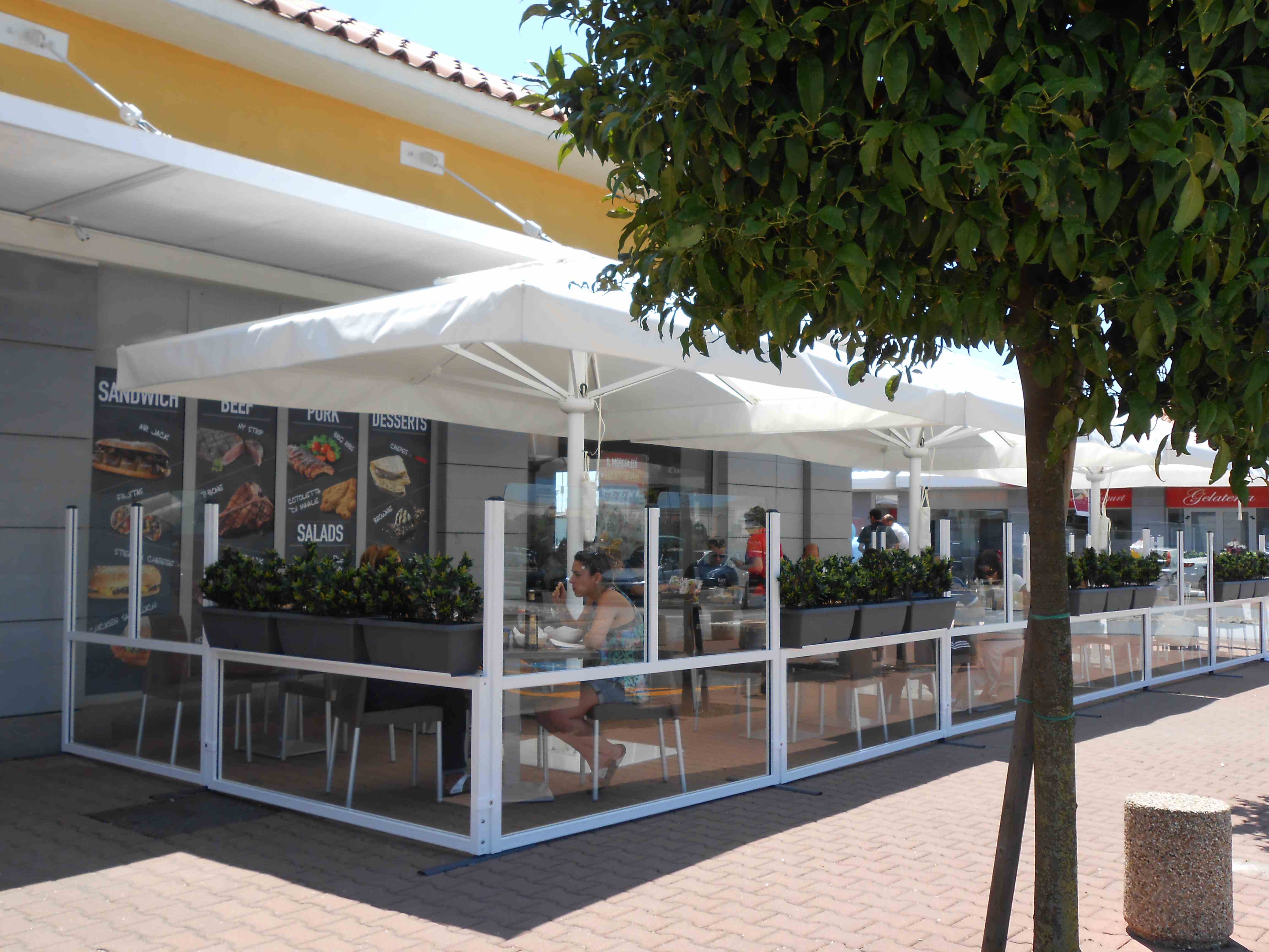 Per creare un ambiente outdoor protetto e confortevole in presenza di strutture e ombrelloni.